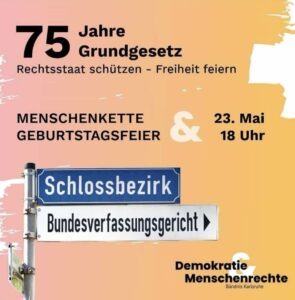 Die AKB ist Mitglied im Karlsruher Bündnis für Demokratie und Menschenrechte das anlässlich der aktuellen Angriffe auf unsere Demokratie für den 23. Mai zu einer Menschenkette aufruft