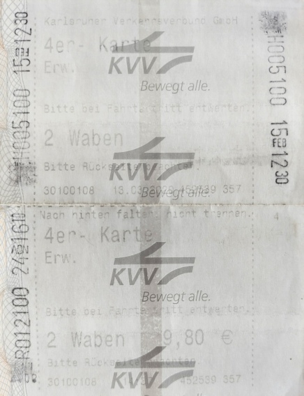 In seiner Sitzung am 11.03.2022 hat der KVV Aufsichtsrat beschlossen, ein nicht entwertetes Papierticket einzuführen. Wenn man darauf nicht von Hand Datum, Uhrzeit und Starthaltestelle eintragen müsste, würden wir sagen „bravo“. So irritiert uns diese doch sehr steinzeitliche Lösung ziemlich, aber wir freuen uns, dass nun wieder ein Vorratskauf von nicht entwerteten Tickets möglich ist.