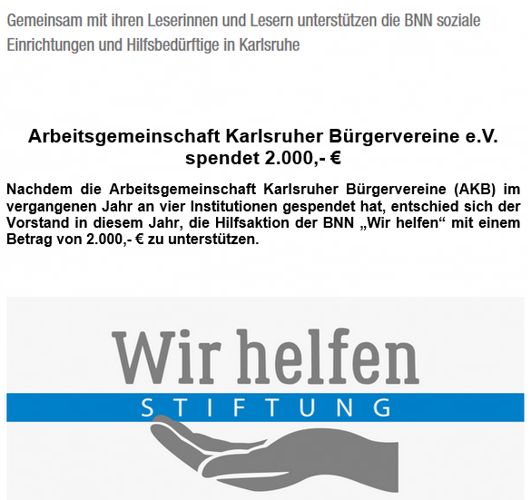 Unsere Gesellschaft ist einer starken Änderung unterworfen. Mit dem demografischen und gesellschaftlichen Wandel müssen sich die Stadtteile auseinandersetzen. Die Bürgervereine als Kenner ihrer Stadtteile sind schon seit Jahren von der Stadtverwaltung einbezogen. Übergeordnet war und ist die Arbeitsgemeinschaft Karlsruher Bürgervereine (AKB) der Ansprechpartner.